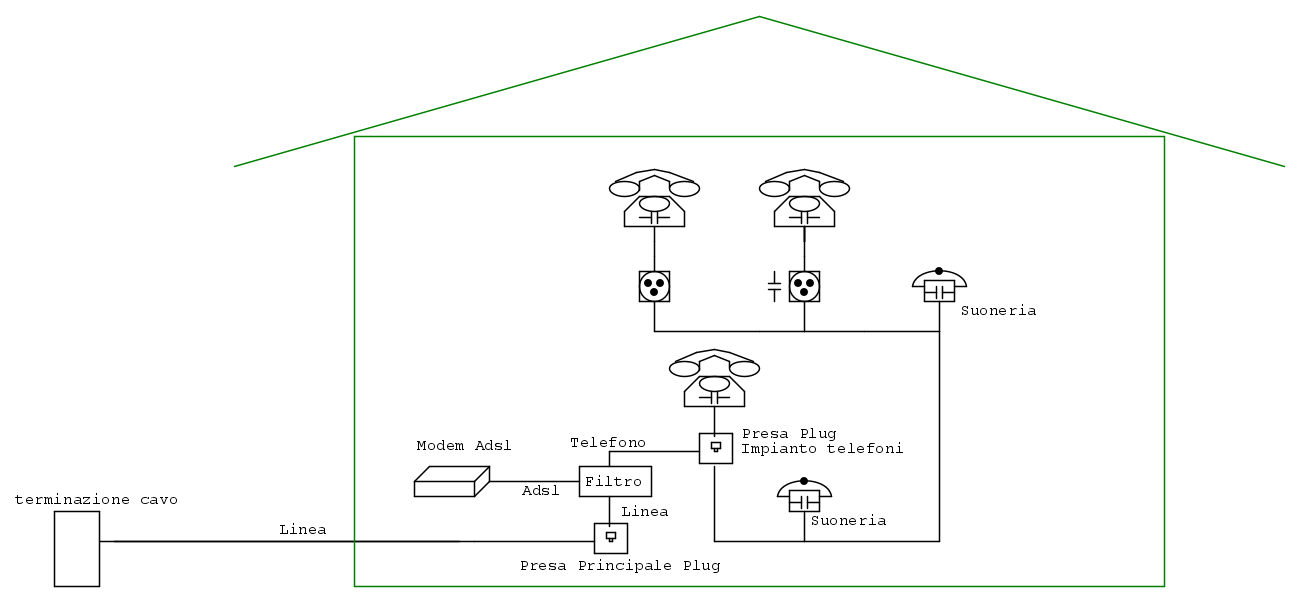 Ecco un esempio della situazione domestica con solo servizio telefonico.