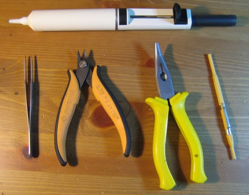 Per montare dei circuiti nella media un saldatore a stilo da 30W con punta nichelata va benissimo. In commercio si trovano a buon prezzo anche quelli a temperatura controllata che sicuramente sono da preferire ma non sono strettamente necessari, non è il caso di spenderci soldi. L' importante è che la punta sia molto fine e ben nichelata. E' necessario e molto importante ricordarsi di stagnare la punta alla prima accensione senza risparmiare filo di stagno. Se non si fa questa operazione la punta durerà pochissimo.
