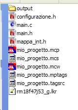 Diamo ora uno sguardo sul progetto e sui files che lo compongono. In MPLAB dovremmo vedere, nella finestra relativa al progetto, questi files: