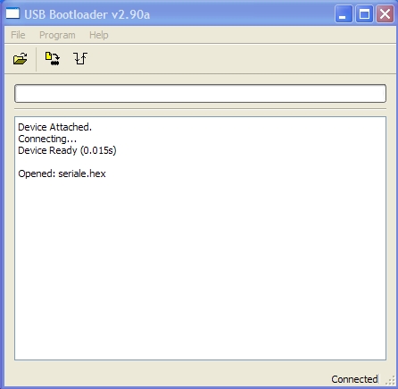 Premendo il simbolo della cartella o selezionando "File->Import Firmware Image" si seleziona il file .hex della cartella Output del progetto (nel mio caso l' ho chiamato "seriale"). La schermata diventerà