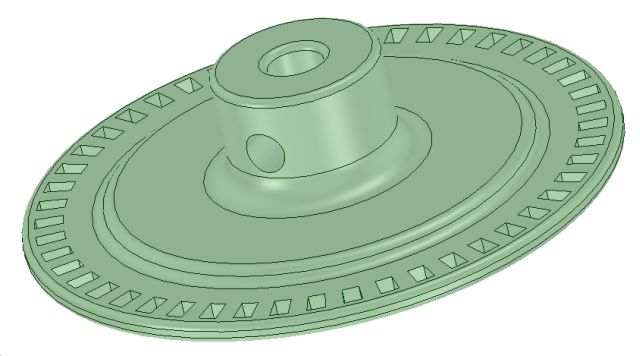 L' idea era quella di disegnare una ruota forata per realizzare un encoder. Il CAD si è comportato bene ma il disegno chiedeva troppo alla stampante, infatti i fori quadrati hanno una larghezza di 1mm. ed ho visto che è troppo per questo tipo di stampanti, la precisione non è sufficiente soprattutto quando i movimenti non sono lungo gli assi ma inclinati. L' interpolazione provoca imprecisione.