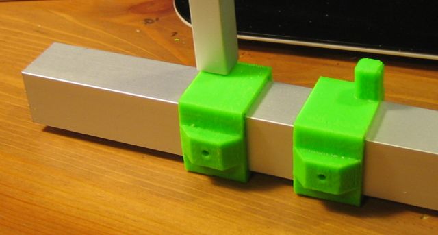 Come si vede dall' immagine questi sono dei collari scorrevoli che stringono un profilato in Al di 20x20mm ed hanno un perno su cui inserire un profilato cavo di 10x10mm. Insieme ad angolari, giunti, boccole posso realizzare i telaietti che mi servono.