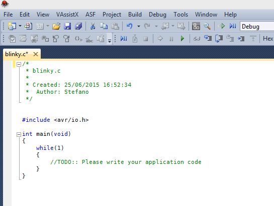 Ed ora di scrivere il programma blinky in modo normale, non come quella schifezza di sopra. I passi per scrivere questo programmino di test sono e provarlo sulla scheda sono: