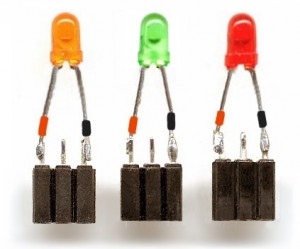 Il modo più facile per iniziare è preparare qualche led su connettori a tre vie, passo 2.54 mm, come i seguenti: