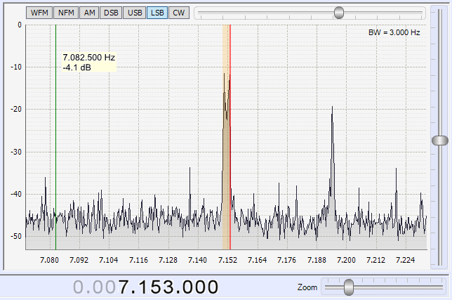 Nel video seguente si vede una "spazzolata" manuale della banda dei 40 metri. Cominciando con le frequenze basse, destinate ai collegamenti in alfabeto morse. Continuando con le telescriventi e i segnali codificati. E infine con la zona destinata ai segnali vocali in LSB.