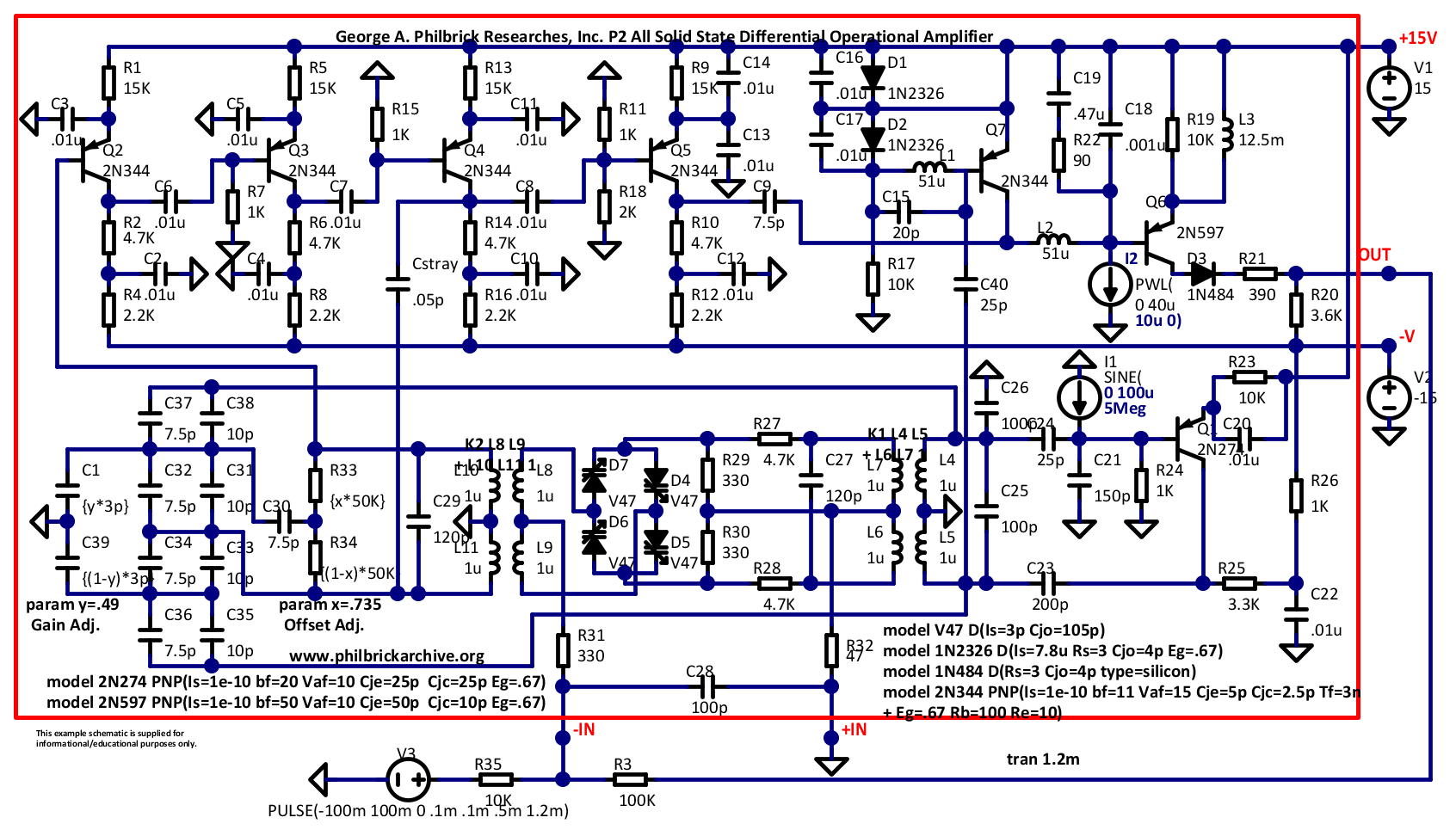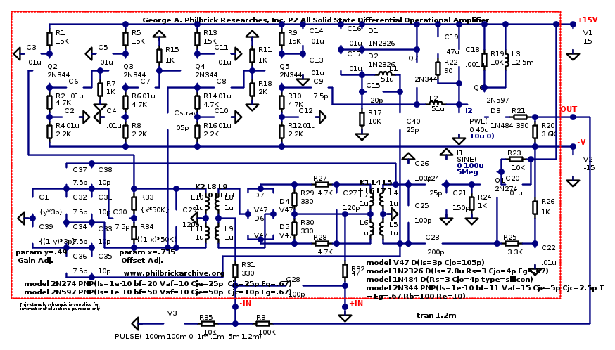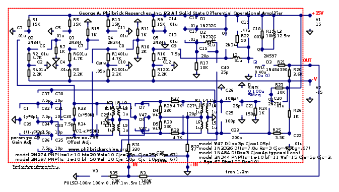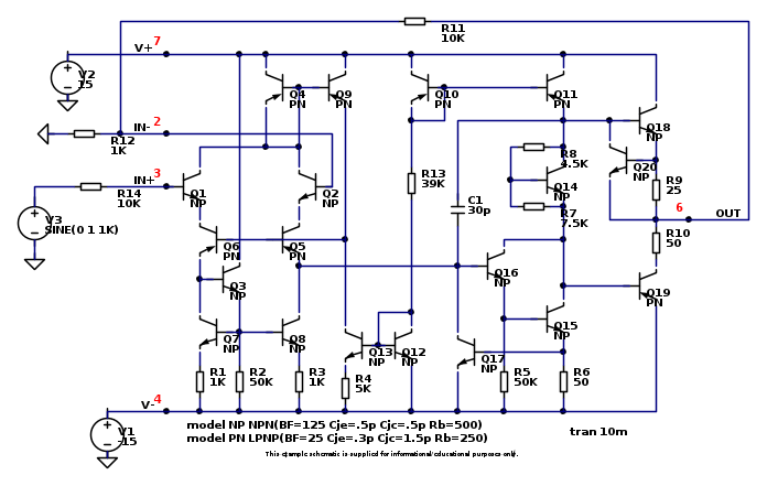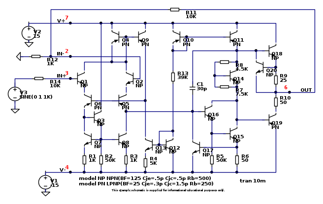 Questo è un LM741, chi ha l'occhio d'aquila noterà che i transistor PNP hanno l'emettitore dal lato sbagliato, lo fanno tutti i PNP e il baco continua a sfuggire.