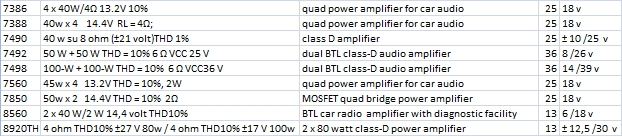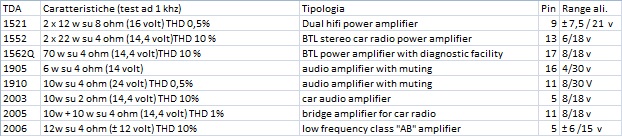 Per maggiori informazioni quindi invito a consultare i relativi datasheet e, qualora vi fosse qualche errore invito a comunicarlo, sarò più che felice di correggerlo. I dati qui presenti sono: numero pin, range alimentazione, watt erogati e numero canali.