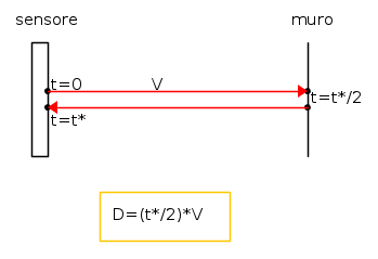Prima di tutto vorrei spiegare a "parole" (quindi senza codice) quello che dobbiamo andare a fare: dobbiamo inviare un'impulso tramite il TRIGGER ogni periodo (il periodo verrà stabilito successivamente) e si deve andare a leggere la durata del "tragitto" dell'ultrasuono sulla porta ECHO. Qui entra in gioco un pochino di fisica elementare: dato il tempo di percorrenza della distanza (che nel nostro caso sarà doppia perchè l'ultrasuono deve fare andata-ritorno) e la velocità (quella del suono) si deve ricavare la distanza percorsa dall'ultrasuono. Infine dobbiamo trasmettere la misura tramite lo speaker (o quello che si vuole).