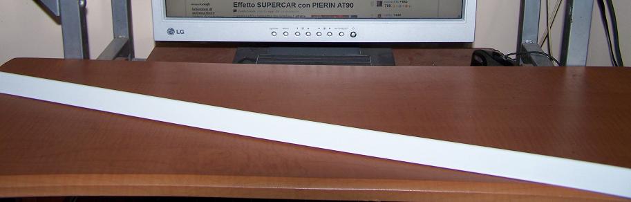 Ora, verificato che nulla esploda, passiamo alla realizzazione del corpo illuminante. Come prima cosa bisogna procurarsi un supporto per i led, nel mio caso un paraspigoli in plastica termoindurente.