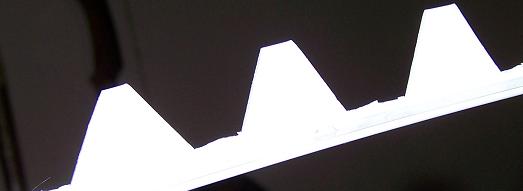 Inoltre, tagliando lo stesso lato come indicato nell'immagine sottostante, è possibile curvare la stringa per eseguire un motivo o seguire il profilo di una parete curva.