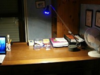 Si tratta di una banale lampadina da libro e una lampada da tavolo, entrambe acquistate molti anni fa e quindi in origine dotate di lampadina a incandescenza/alogena. Entrambi i "progetti" si basano non tanto sui calcoli teorici (molto semplici) ma sulla misura e caratterizzazione dei componenti disponibili, con soluzioni tecnicamente non proprio ortodosse ma all'atto pratico semplici ed affidabili.