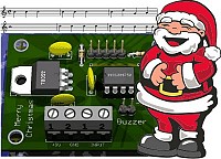 Abbiamo pensato di allestire un piccolo circuito e di lasciare disponibile sul tavolo, accanto al latte e ai biscotti, anche un pulsantino con un cartello: PREMI QUI. In questo modo vorremmo che Babbo Natale possa ascoltare alcuni brani tipici natalizi "suonati" (se così si può dire) da un circuito embedded a microcontrollore. Con un PIC, ovviamente! E allora ecco qui il circuito (per scaricare il file PDF proseguire alla sezione "Progetto"). Si osservi che anche per questo progetto si è pensato di impiegare un PIC della serie 12F6xx alimentato da uno stadio stabilizzatore a 5V. Al PIC sono connessi un pulsante normalmente aperto, un buzzer piezo elettrico ed un LED pilotato da un transistor.