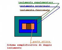 Il doppio isolamento si ottiene aggiungendo al normale isolamento delle parti attive, ovvero all’isolamento principale un ulteriore isolamento supplementare. E' consentito dalla Norma anche l’utilizzo di un unico isolamento, purché risponda alle caratteristiche meccaniche ed elettriche del doppio isolamento, che in tal caso è detto rinforzato. Lo scopo del doppio isolamento è quello di offrire comunque un isolamento della parte attiva qualora per ragioni meccaniche abbia ceduto la prima parte di isolamento. Un’apparecchiatura con isolamento doppio o rinforzato viene classificata di classe II.