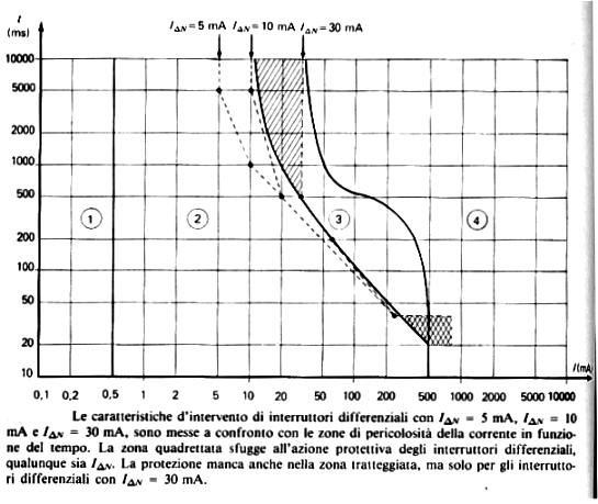 di intervento dei differenziali ad alta sensibilità e curva di