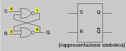 Il programma di simulazione mostra infatti che se, con R allo stato "0", all'ingresso S si presenta lo stato "1", l''uscita Q diventa "1" e permane in questo stato anche quando S ritorna allo stato "0". (Il ripristino di Q=0 avviene solo quando R=1).