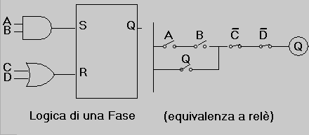 Per rendere più evidente la funzione della fase, in figura è stata rappresentata anche l'equivalente schema a relè, che rende immediata la comprensione della logica relativa.
