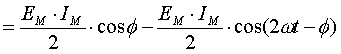 Il primo termine dell'ultima espressione rappresenta la potenza attiva di una fase (P=EIcosf), il secondo la potenza fluttuante. Ripetendo i calcoli per le altre due fasi otteniamo un identico primo termine per entrambe mentre i secondi termini sono sfasati di 120° in anticipo l'uno ed in ritardo l'altro. La loro somma è dunque nulla e la potenza istantanea coincide con la somma dei tre termini costanti.