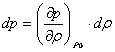 con K costante di proporzionalità che altro non è che la derivata della pressione rispetto alla densità, in quantosi può calcolare in base alle leggi dei gas, in precedenza citate. Linearizzando la legge, nell'intorno del punto di equilibrio corrispondente alla pressione p0 (che supporremo quella atmosferica), la costante di proporzionalità è la derivata di p rispetto a r, calcolata nel punto di equilibrio , cioè per r=r0 per quanto detto più sopra: