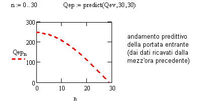 Anche qui possiamo ricorrere ai sofisticati metodi oggi disponibili con il calcolatore. Uno di questi è la "predizione lineare". In pratica, data una serie di m valori consecutivi vengono automaticamente ricavati altri n valori che sono la "naturale" progressione dei primi. Questo significa che raccolti m valori di Qe possiamo utilizzare nel calcolo di previsione gli n valori così ricavati, affinando cioè la previsione del livello che potrà essere raggiunto nella mezz'ora successiva.