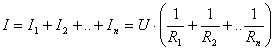 Nel caso del parallelo invece, per il primo principio di Kirchoff la corrente totale è la somma delle correnti sulle singole resistenze le quali, per la legge di Ohm, sono uguali alla tensione comune diviso la resistenza stessa.