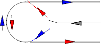 Il principio dell'inverter è quello comandare il flusso delle cariche in modo che effettuino una parte del loro percorso in un senso quindi in senso inverso, alternativamente. Si può pensare che esse arrivino ad un bivio che immette in una pista: prendendo una delle due strade che si diramano dal bivio la pista viene, poniamo, percorsa in senso orario; in senso antiorario prendendo l'altra. Obbligando le cariche che arrivano sempre dalla stessa strada, la quale è perciò interessata da una corrente continua, ad imboccare alternativamente una via o l'altra, nella pista avremo un movimento alternato delle cariche, cioè una corrente alternata. La figura illustra il concetto: