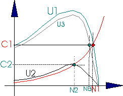 Nel grafico sono tracciate le caratteristiche di un motore per tre tensioni: U1>U3>U2. Se il carico richiede una coppia costante C1, diminuendo la tensione, non si può scendere sotto la velocità n3. Se la coppia richiesta non è costante, si può ottenere la velocità n2.