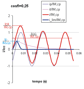 NB:La curva color magenta � la componente transitoria smorzata che sommandosi alla corrente sinusoidale di regime d� luogo alla corrente presunta di cortocircuito.