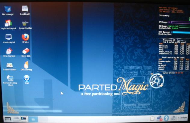 Come la precedente, anche questa è una foto, e non mi è venuta nemmeno bene ma, a sinistra, si nota l'icona che richiama l'opzione "Partition Editor" cioè quella che serve: PM, software basato su Kernel Linux, può naturalmente fare altre cose oltre a mettere a disposizione la funzione che ci interessa, ma a "noi" tanto basta, questo è il dettaglio: