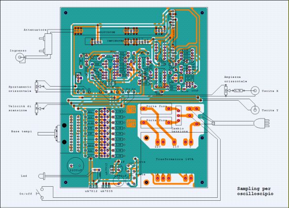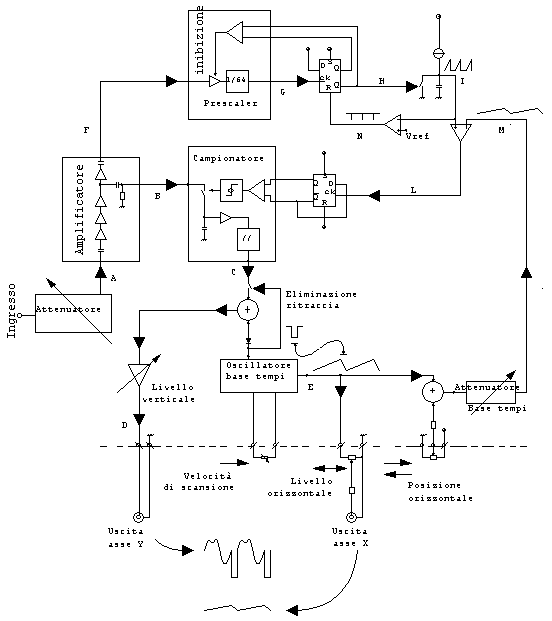 Il segnale lentamente variabile ai capi del condensatore del campionatore, opportunamente amplificato e calibrato, giunge all’uscita Y dello strumento.