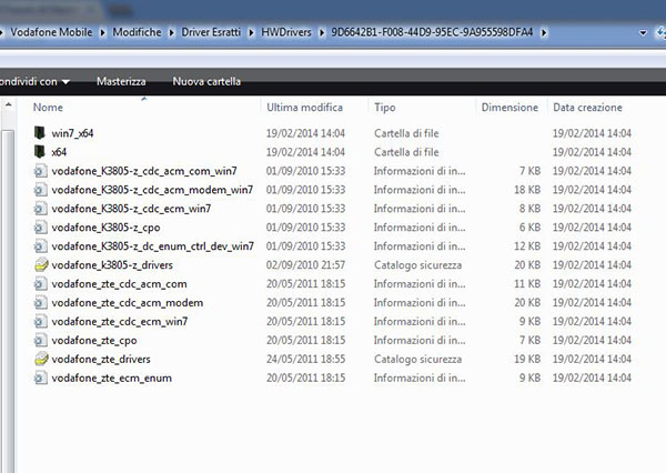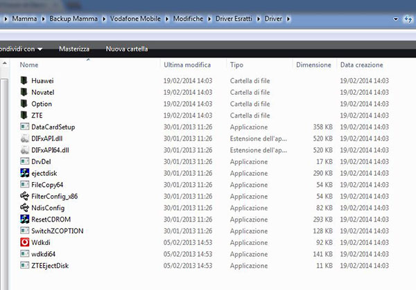 nella cartella Driver, troviamo a disposizione i driver per diverse chiavette (Huawei,Novatel,Option,ZTE) mentre, nella cartella HWDriver, troviamo soltanto i driver specifici per la nostra.