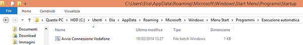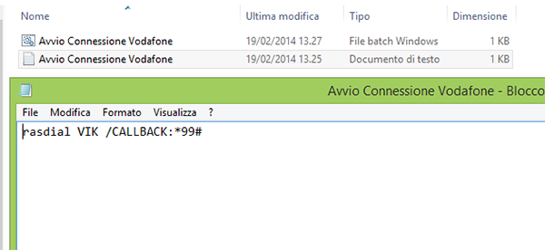 Per fare in modo che il PC si connetta automaticamente all'avvio, come succedeva impostando correttamente il software Vodafone, bisogna creare un file batch, da inserire nell'esecuzione automatica, in modo tale che, all'accensione del PC, venga eseguito il file.bat contenente le istruzioni per avviare la connessione.