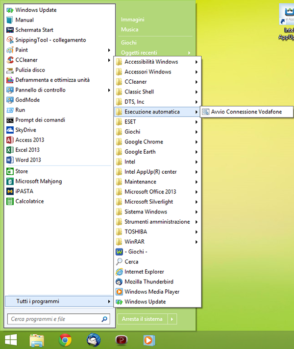 Se avete già installato un programma che reintegri il menu start in windows 8.1, come nella foto sotto (il programma si chiama Classic Shell Setup), vi basterà aprire il menù e copiare il file nella cartella Avvio Automatico.